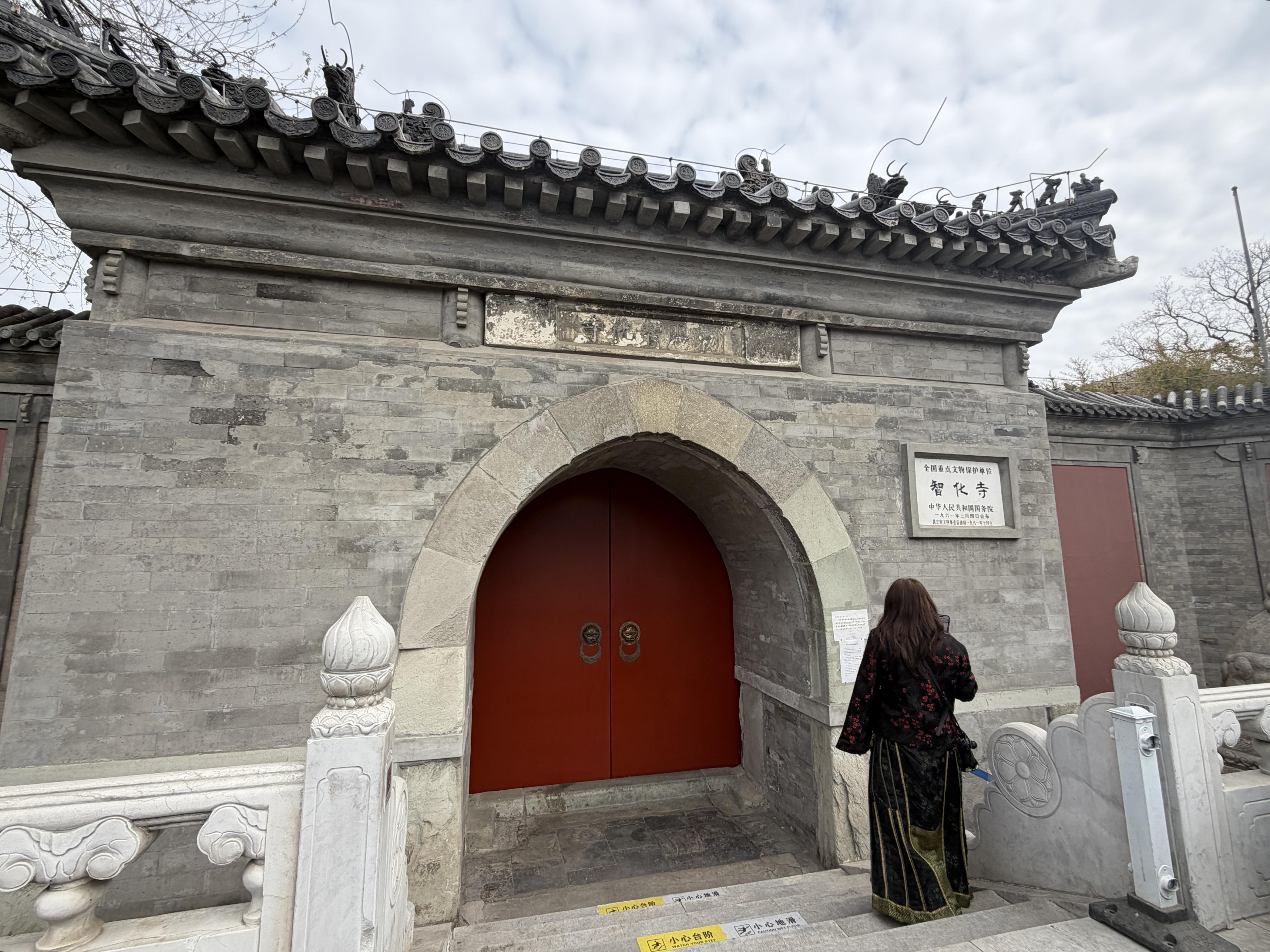 上周末,智化寺智化殿前,梨花树下“长”满了人。观众举着手机、相机,卡角度出片。有些人甚至等不及修图,就发朋友圈炫耀。摄影爱好者张先生说:“我早上8点多就来排队了,就为了赶第一批入馆。”